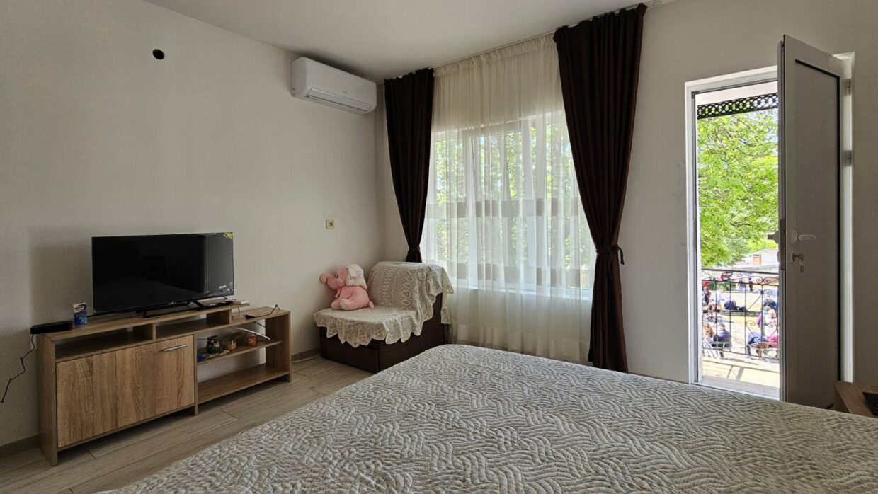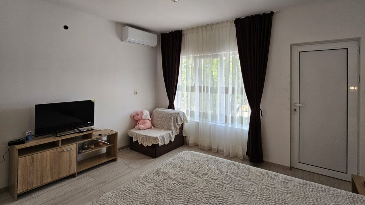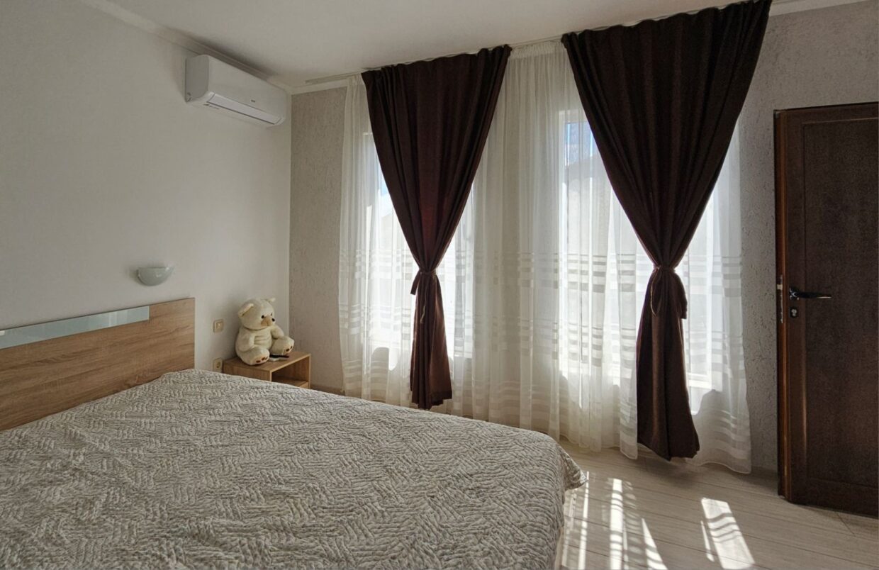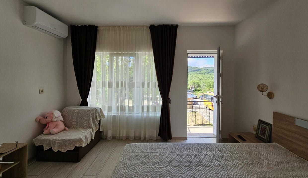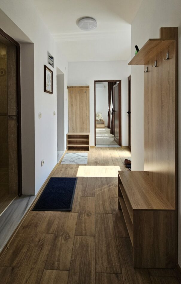 Разполага с 2 стаи със самостоятелни тоалетна и баня. Помещение за готвене и отделно за храна. Обща леглова база от 6 легла, самостоятелна баня, Wi Fi и телевизор. Стаите са със спалня плюс фотьойл-легло./2 плюс 1/.